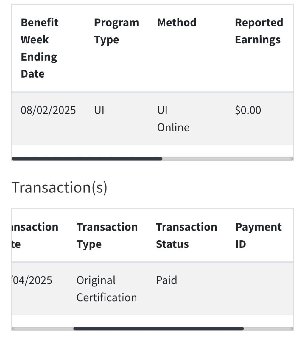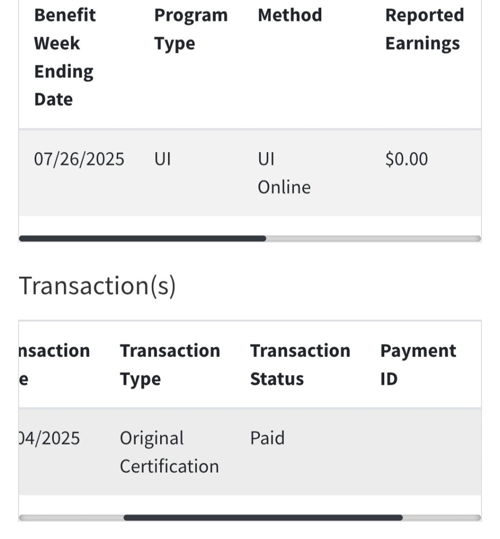 •If you don't see a payment ID or transaction number in your UI Online account, that usually means the payment hasn't been processed yet by EDD. Check your payment history page - you should see both a payment date and a transaction number once EDD has actually initiated the payment. Without those, the money likely hasn't been sent to your bank yet. What does your certification status show - is it still "pending" or has it changed to "paid"?