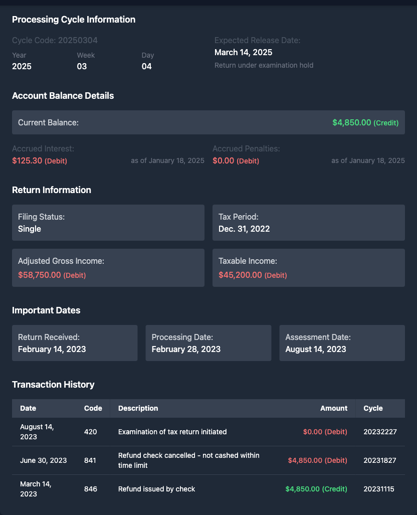 •Yeah it breaks down everything! Shows you what triggered the audit, estimated timeline, and gives specific steps to speed things up. Way better than trying to decode IRS codes yourself lol