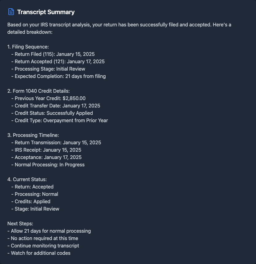 Hey y'all, I've been watching transcripts like a hawk for the past few weeks and finally seeing some movement! I used taxr.ai (https://taxr.ai) to analyze my transcript and it showed me exactly where I am in the process. It looks like my return is moving through the final verification stages. The AI picked up on some codes I didnt even notice and explained everything super clearly. Highly recommend checking it out if your stuck wondering what's happening with your return. Its way better than trying to decode all these crazy codes ourselves lol