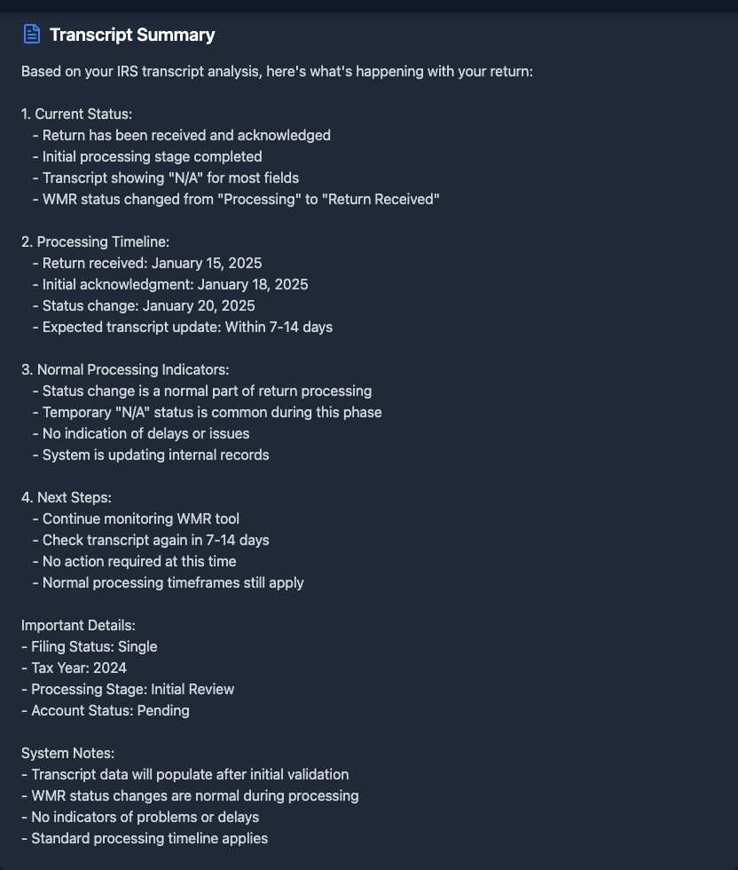•Does taxr.ai actually work with the current transcript system? Like can it tell you if theres gonna be delays?