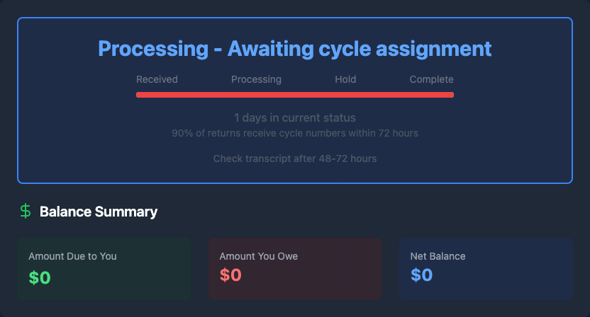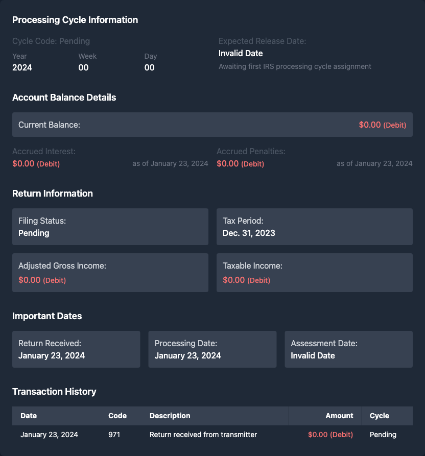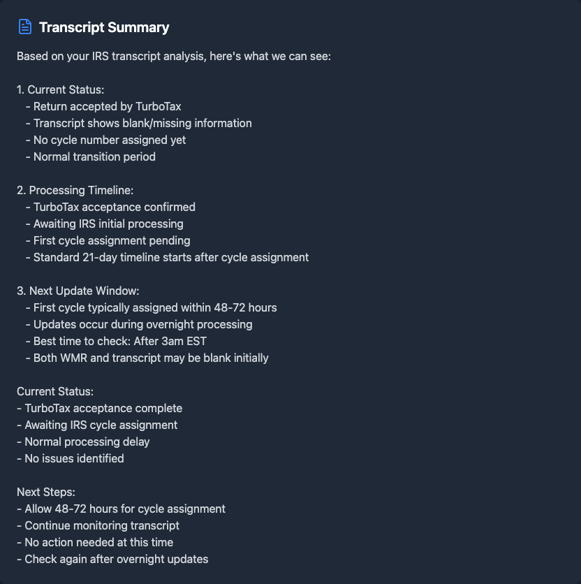 2024 Tax Transcript Empty After TurboTax Acceptance - No Cycle Number Showing