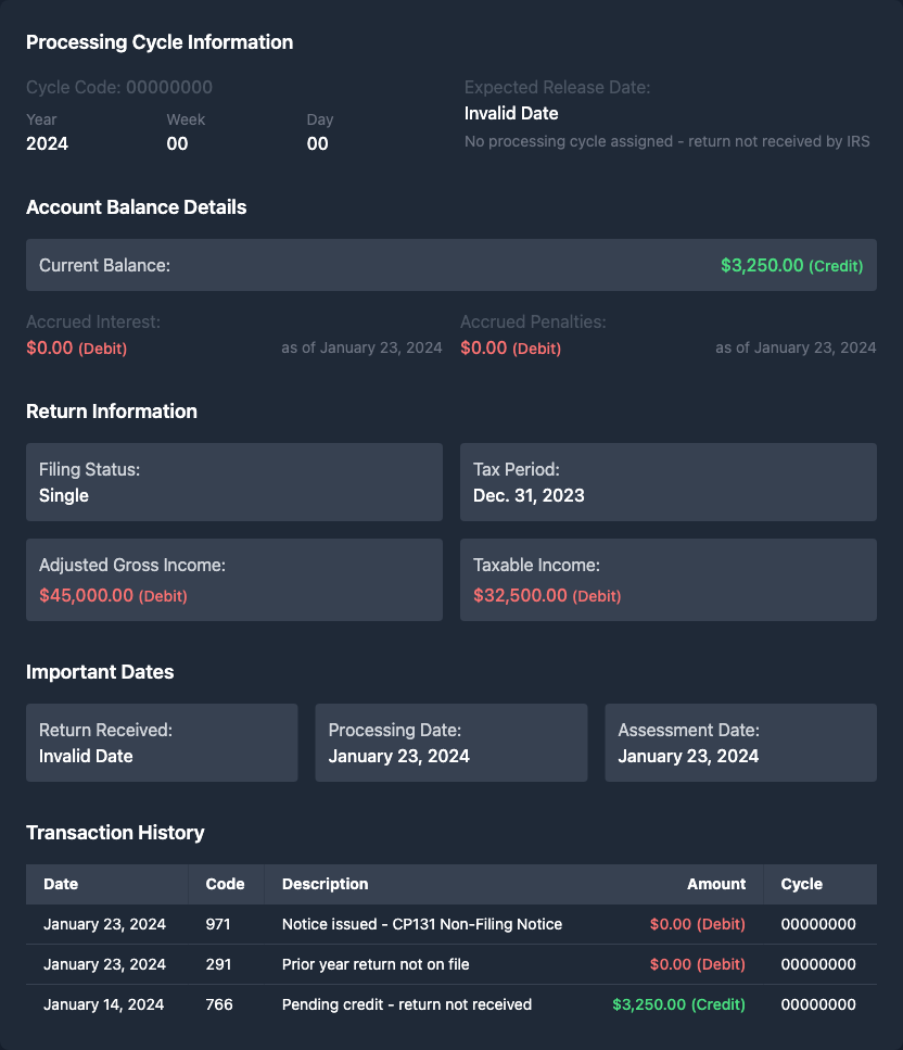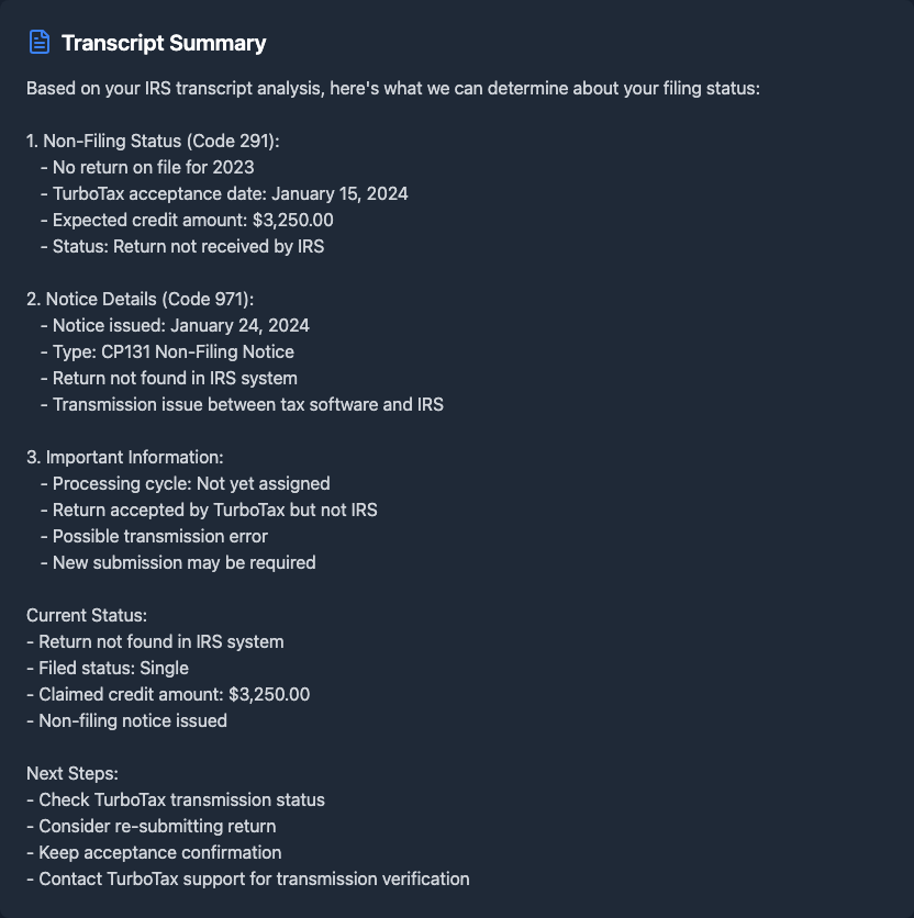 2024 Transcript Shows Non-Filing Letter Despite TurboTax Acceptance on January 26th - IRS Claims No Record as of January 29th