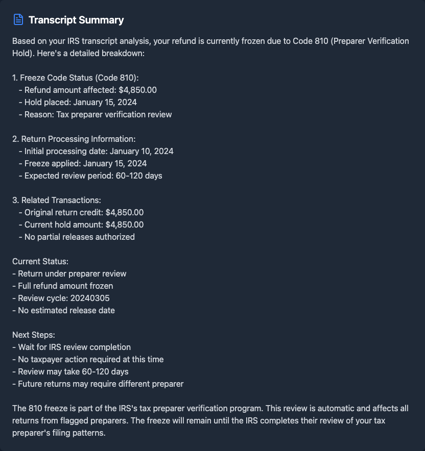 •Super detailed! Gives you estimated dates, explains all the codes, and tells you exactly what steps to take. Best $1 I ever spent on this refund mess 💯