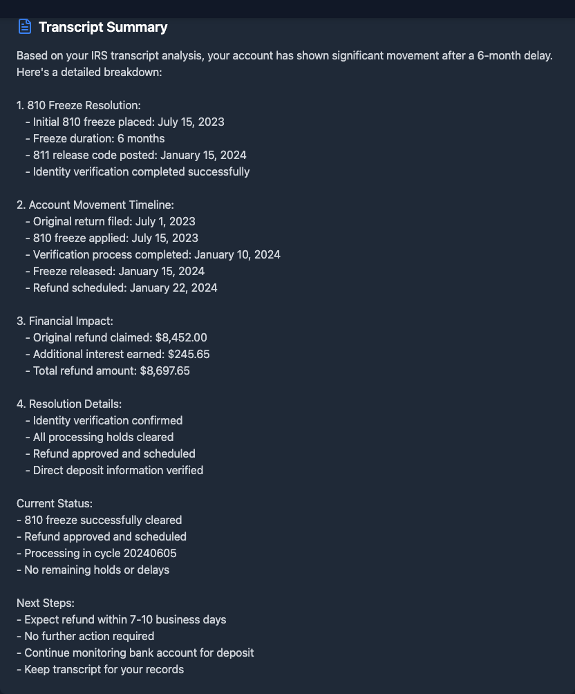 •Just tried taxr.ai and wow im actually impressed. It explained my 810 freeze better than the IRS rep did lol. Even gave me the exact steps to fix it 💯