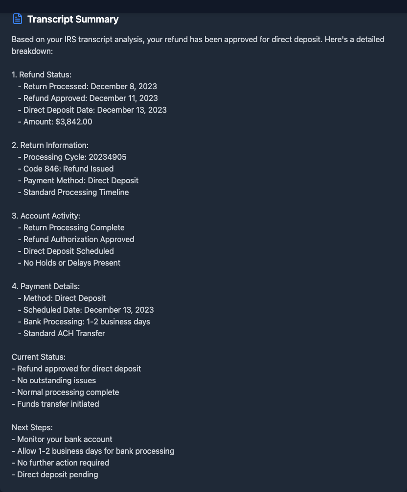 •I used taxr.ai last week actually, it was super helpful. gave me the exact date my $ would hit and explained all the weird codes on my transcript