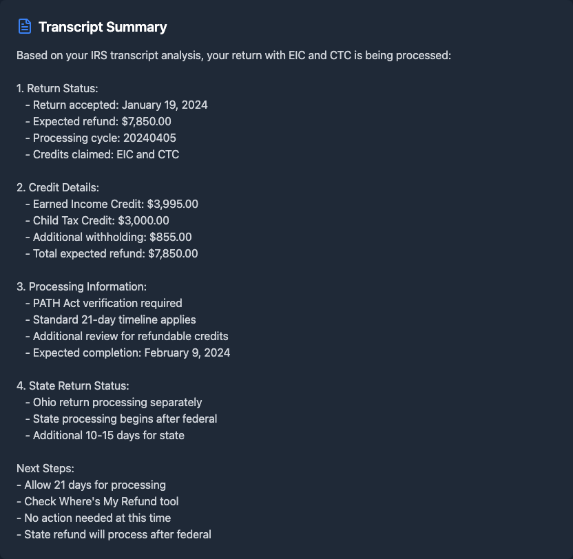 •Super accurate! It analyzes every line of your return and transcripts to identify potential delays. Way better than just guessing or checking WMR