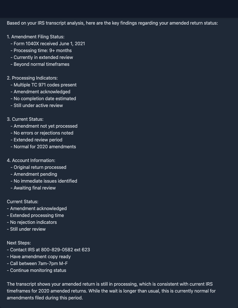 •just tried taxr.ai and wow actually helpful af! It showed me exactly why my amendment was stuck and gave me steps to fix it. worth every penny fr fr 💯