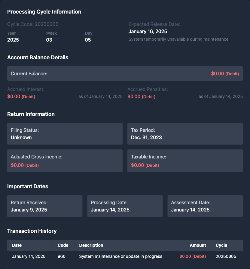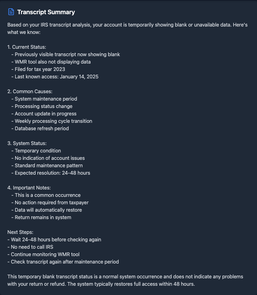•Yeah! taxr.ai can analyze any tax docs you have - returns, letters, old transcripts, whatever. It uses AI to figure out whats going on and when youll likely get paid. Super helpful during these blackout periods