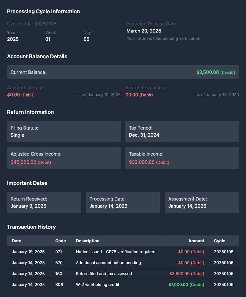 •Usually takes about 5-7 business days. But seriously check out taxr.ai - it'll tell you exactly what to expect based on your specific situation