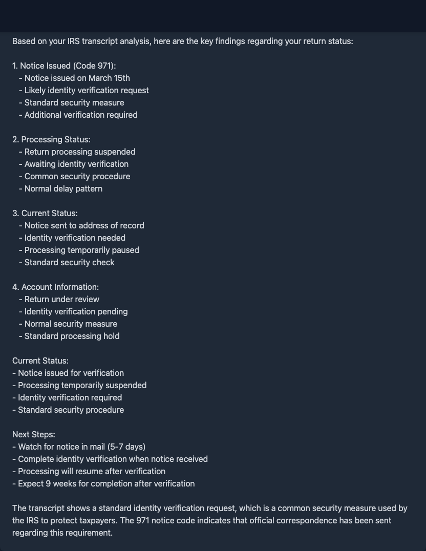 Ok fam, i paid for taxr.ai and this is what I got back on my 971: basically says my 971 is for an adjustment notice and i should get my refund in 2-3 weeks! worth every penny fr fr 🙌
