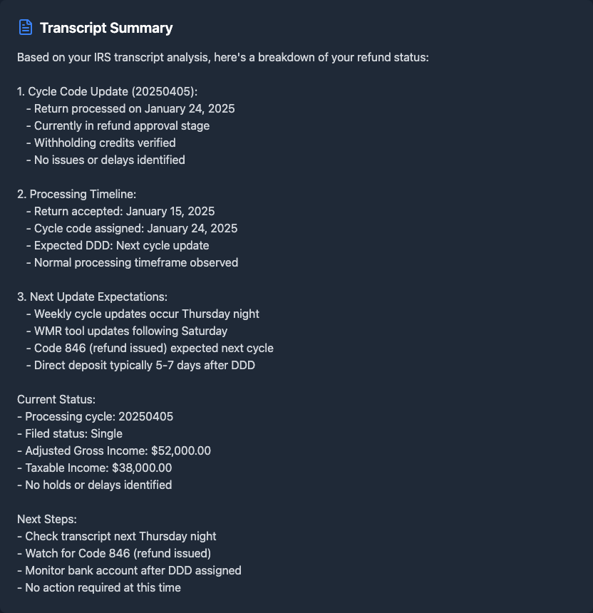 โขHoly cow this is amazing! ๐ It actually told me exactly when my refund will hit based on my cycle code and processing pattern. Way better than refreshing WMR every 5 mins ๐