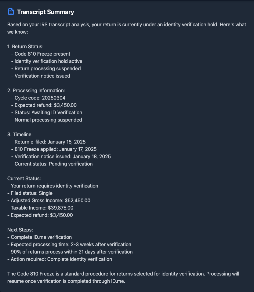 •OMG yes! It analyzed my transcript and showed me exactly why I had the 810 freeze. Told me which forms to submit and where. My refund got released like 2 weeks later! 💯
