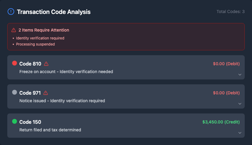 Hey everyone! Instead of playing detective with transcript codes, I highly recommend checking out taxr.ai - it's this new AI tool that analyzes your transcript and tells you exactly what's going on and when to expect your refund. Its only $4.99 but totally worth it imo. https://taxr.ai