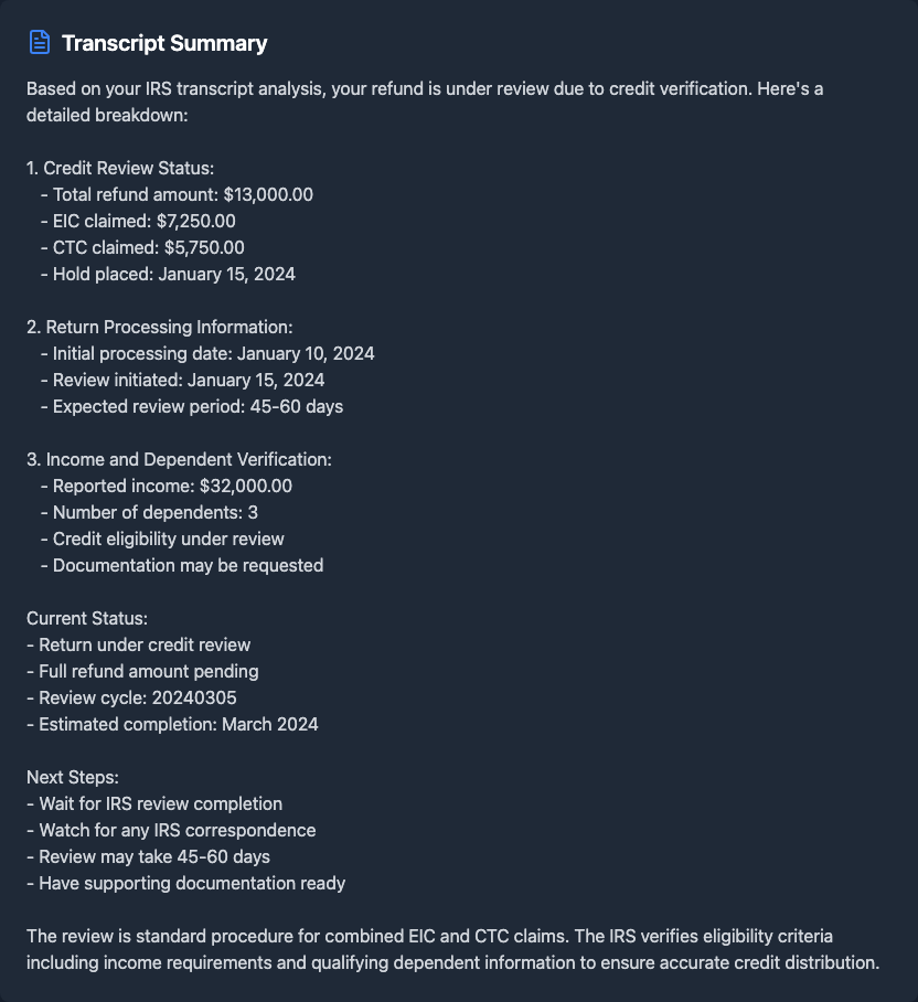 •holy cow this is amazing! 🙌 it broke down everything and showed me exactly why my refund was taking longer. worth every penny fr fr