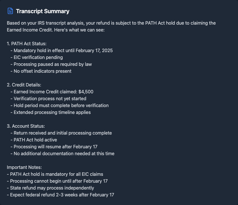 •It's an AI tool that reads your tax docs and gives you specific info about your refund timeline. Super secure - they don't store any data. Been recommending it to all my clients