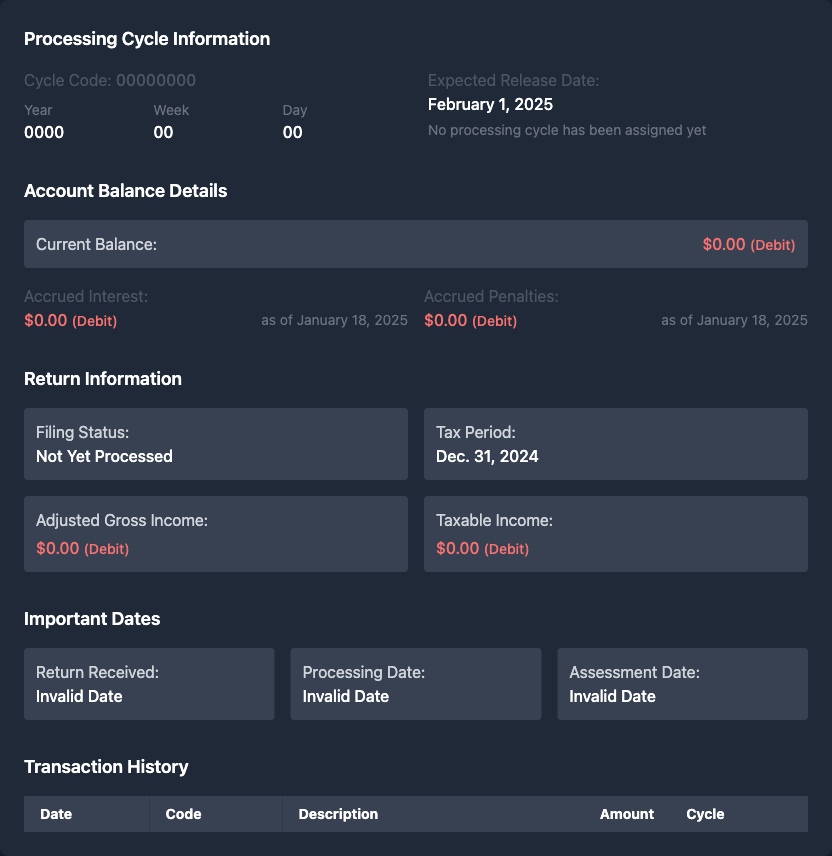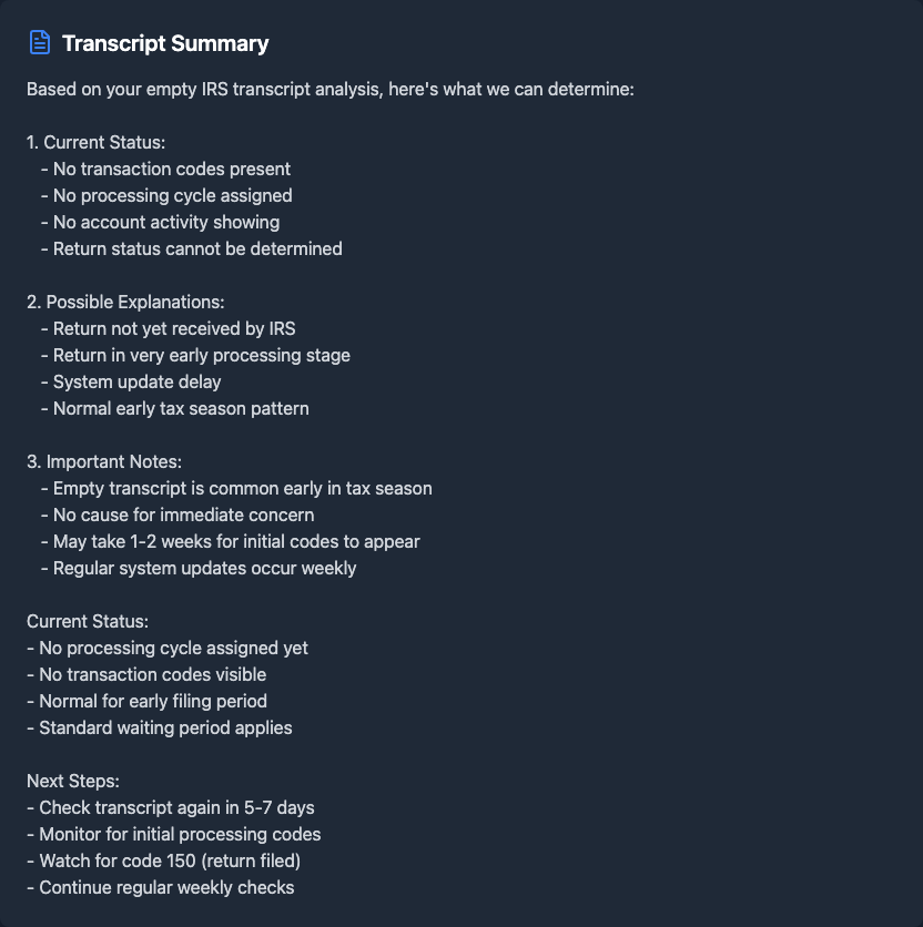 Empty IRS Transcript - No Updates or Info Showing - What Does This Mean?