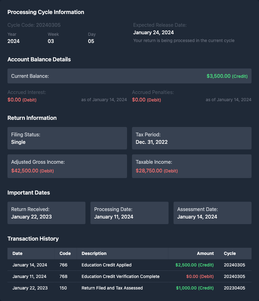 hey! instead of trying to decode everything yourself, check out taxr.ai - it basically reads your transcript and tells you exactly whats happening and when to expect your refund. saved me so much headache fr fr. its like $5 but worth every penny https://taxr.ai