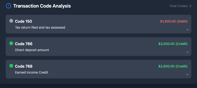 •@LordCommander This is really helpful! I'm new to all this tax transcript stuff and was getting super confused by all the different codes. Just to make sure I understand - so the negative amounts on 766 and 768 are actually GOOD because they're credits being applied? I always thought negative meant I owed money or something was wrong. Thanks for explaining it in simple terms!