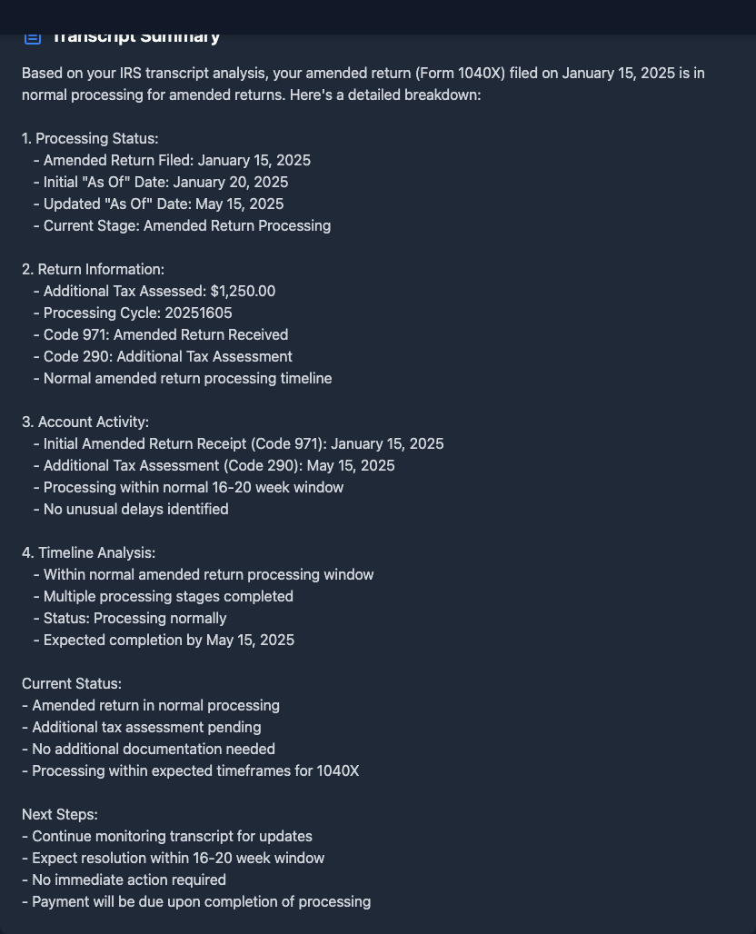 •It's pretty spot on. Uses AI to analyze all your docs and gives specific dates/issues. Better than guessing or calling IRS 100x