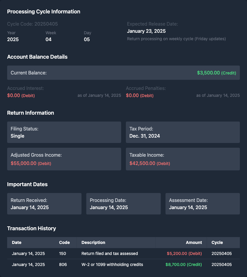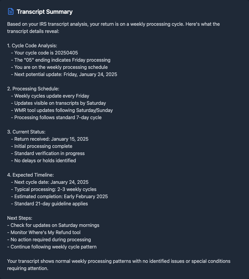 How to determine if I'm on weekly or daily processing cycle from IRS transcript codes?