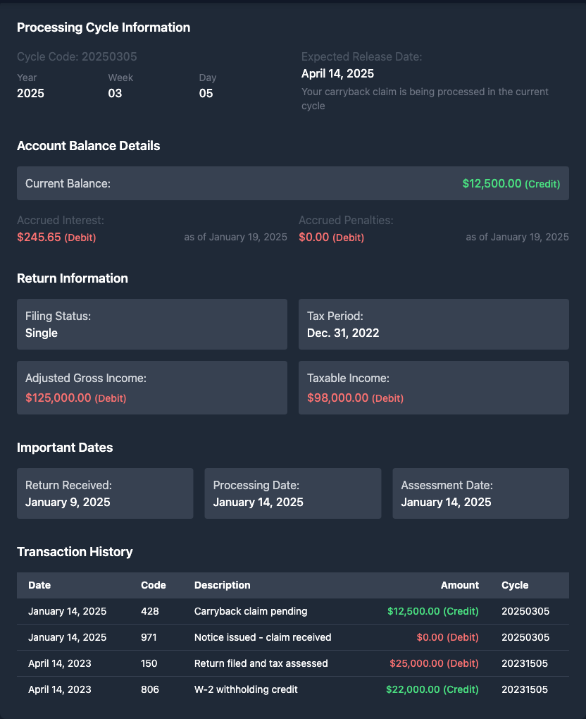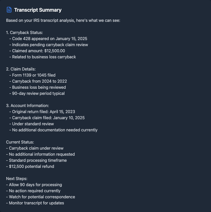 •Just used taxr.ai and here's what I got back: It explained my code 428 is temporary and should clear in about 2 weeks based on current processing patterns. Way more helpful than the IRS website fr fr