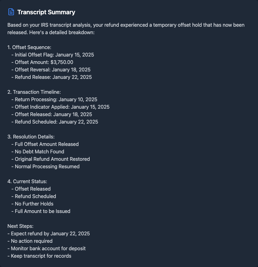 •Thanks for the tip about taxr.ai! Just uploaded my transcript and wow - it actually showed me I had a $2,500 offset from an old state tax bill I forgot about 😩 At least now I know why my refund amount kept changing
