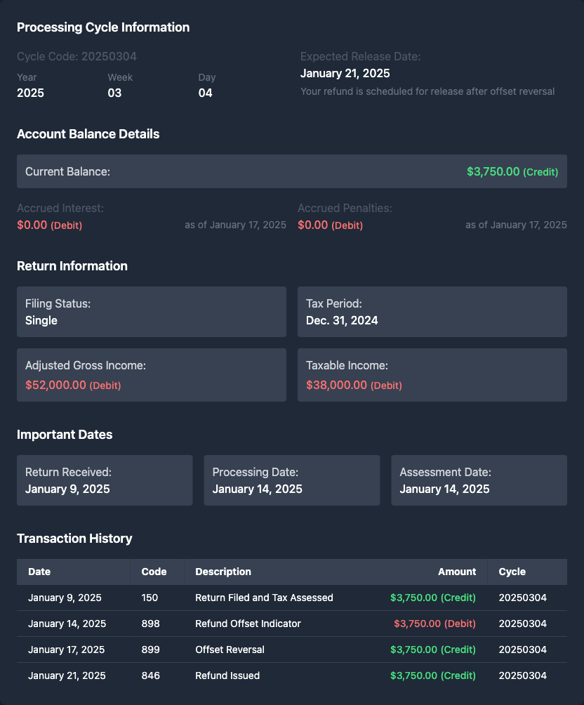 Hey guys instead of playing detective with the offset line, check out taxr.ai - it analyzes your transcript and tells you exactly what's happening with offsets and when to expect the remaining refund. Its $4.99 but worth every penny tbh https://taxr.ai
