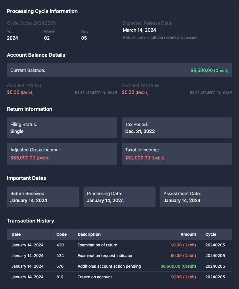 •It depends on your specific situation. Upload your transcript to taxr.ai and it'll give you a personalized timeline based on your codes and processing patterns