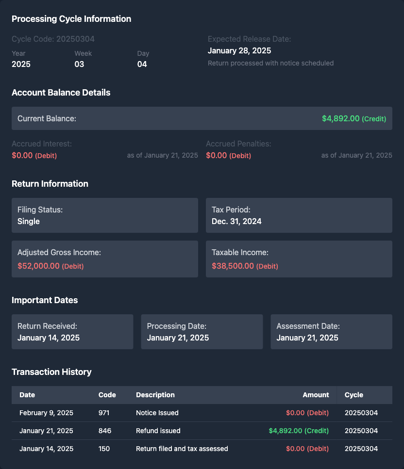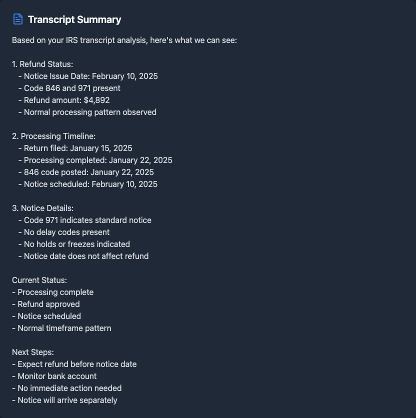 Hey guys just wanted to share something that helped me tons - I used taxr.ai to analyze my transcript and it told me exactly when to expect my refund. Cost $1 but saved me so much stress and guesswork. Here's the link if anyone wants to check it out: https://taxr.ai