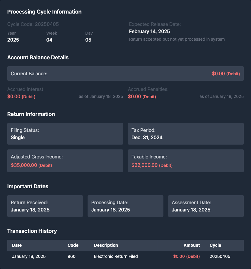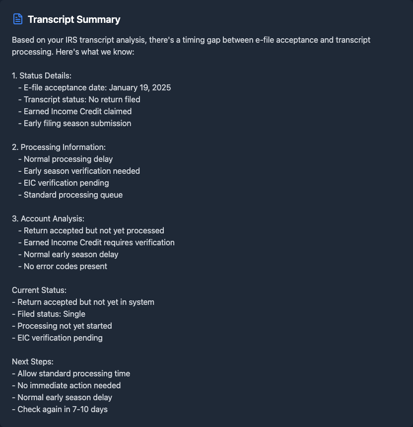 •Good catch on the timeline! That definitely doesn't add up. OP might be looking at 2024 tax year info or got confused between tax years. But yeah, transcript is definitely the way to go - WMR has been super unreliable this season. I've seen so many people get accurate info from their transcripts when WMR shows nothing.