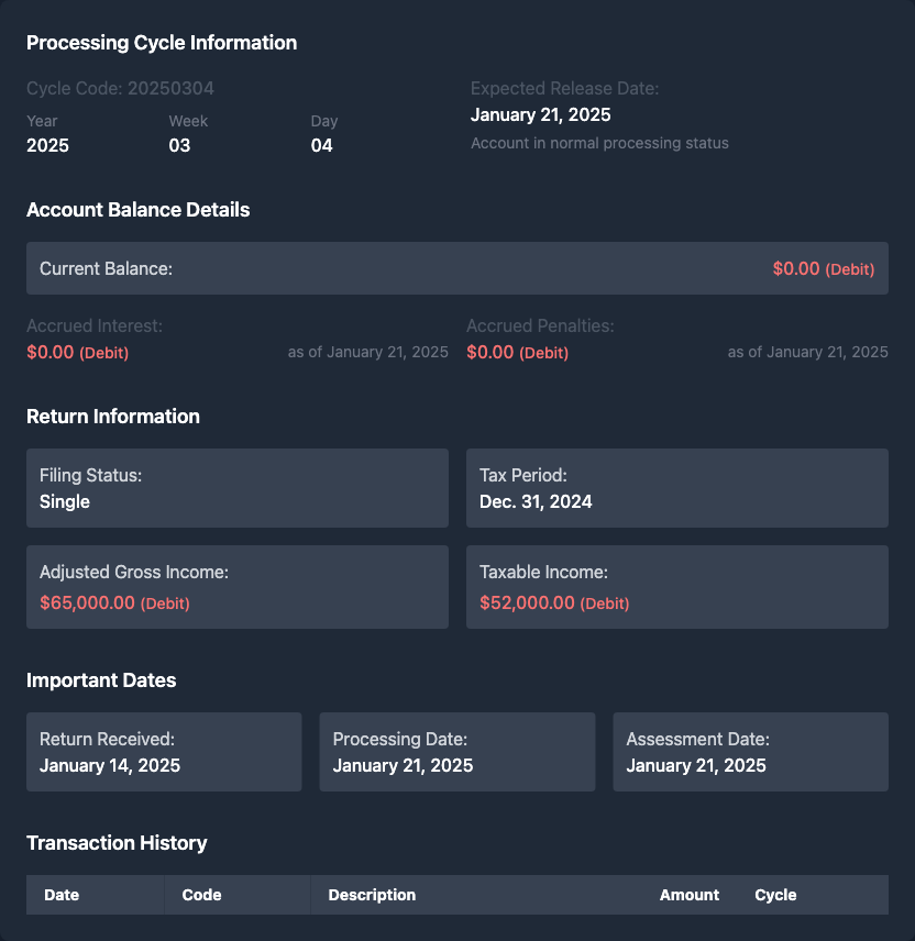 •100% legit. It analyzes everything - transaction codes, dates, amounts, even those weird cycle numbers. Gives you a full breakdown of whats happening with your return