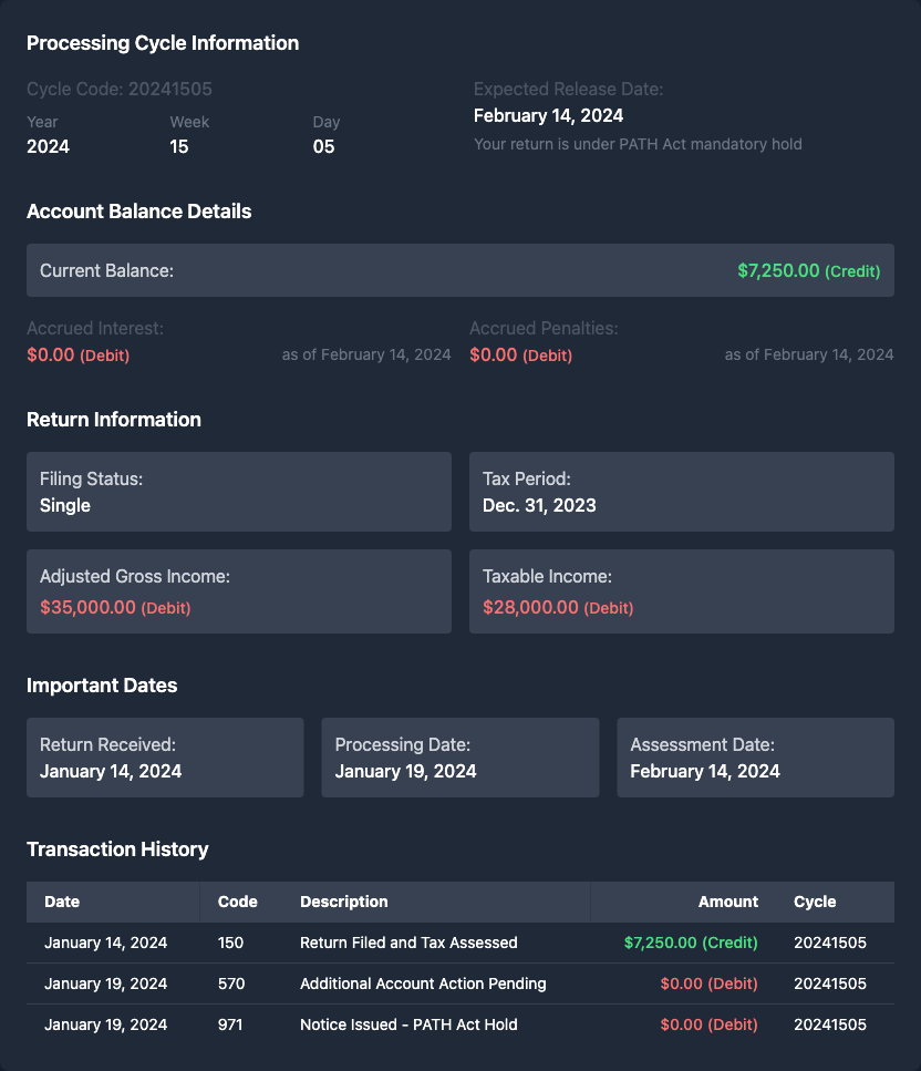 2023 Transcripts Updated Showing $11,678 Refund with EIC - Waiting for PATH Act to Lift