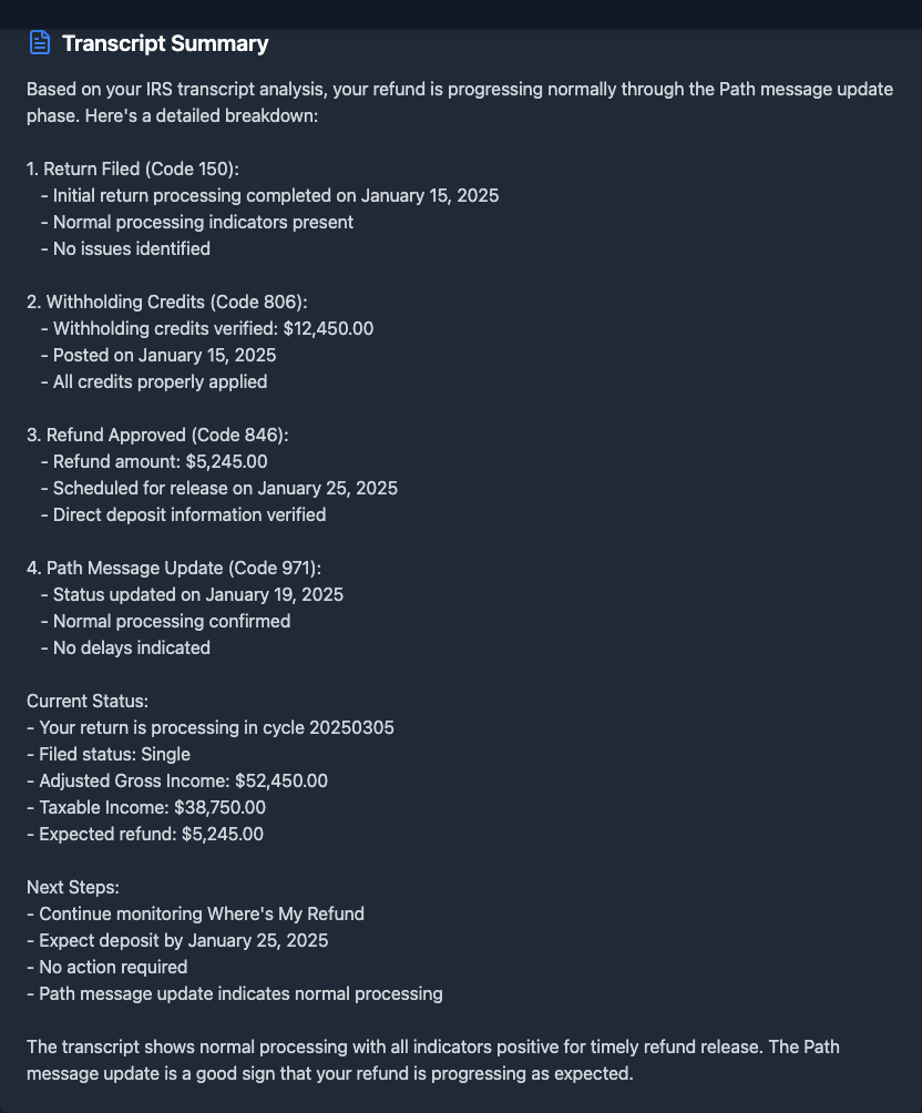 •its this new AI tool that reads your tax docs and tells you exactly whats going on with your refund. way better than trying to decode the irs website yourself lol. check it out at https://taxr.ai