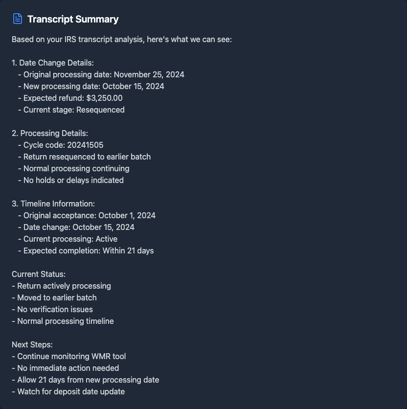 Hey guys, instead of playing detective with these transcript dates, I started using taxr.ai and it's been a game changer! It costs $1 but it analyzes your whole transcript and tells you exactly what's happening and when to expect your refund. Check it out: https://taxr.ai