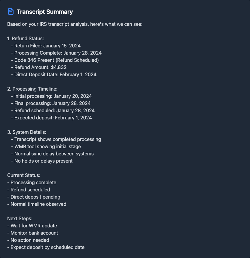 •just tried taxr.ai and here's what I got back: It confirmed my DDD is actually March 1st even tho WMR is stuck! Even explained all the codes I couldn't understand before