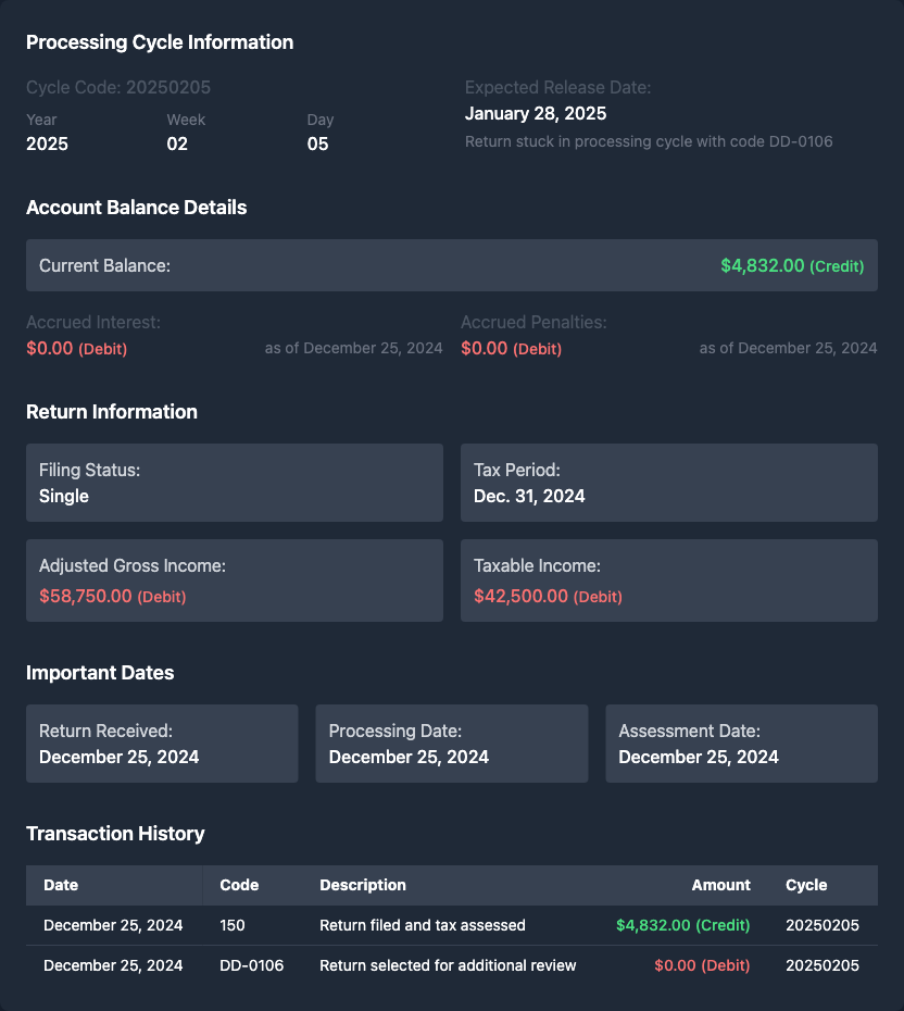 Filed my 2023 taxes early and got my direct deposit date for January 6th but my transcript hasnt moved since. Been checking everyday and nothing changes. Anyone else seeing updates? Starting to get worried since its been three weeks with no movement and no money in my account.