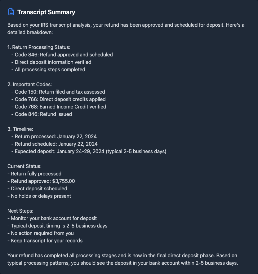 •holy cow this is amazing! it literally told me exactly when my refund will hit 🙌 worth every penny fr fr