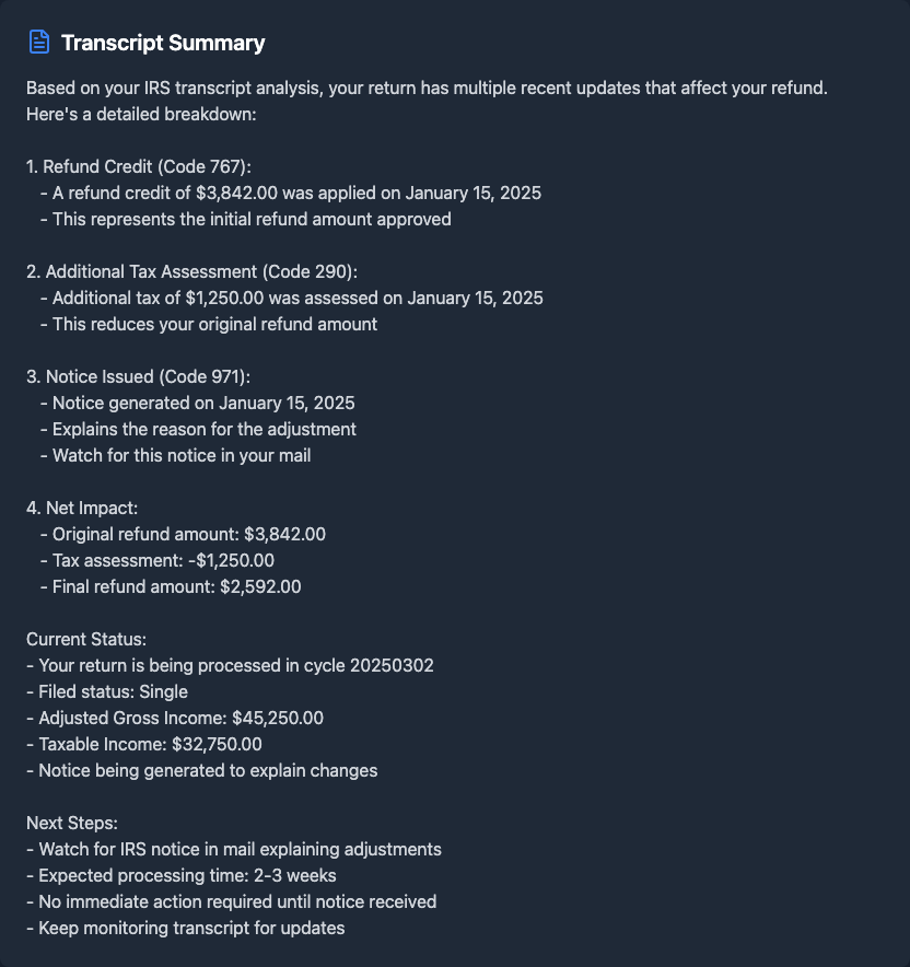 IRS Transcript Updated: Code 767 Removed $8,095 Credit, 290 Additional Tax Assessment $0, 971 Notice Being Issued - What's Happening With My $5,595 Refund?