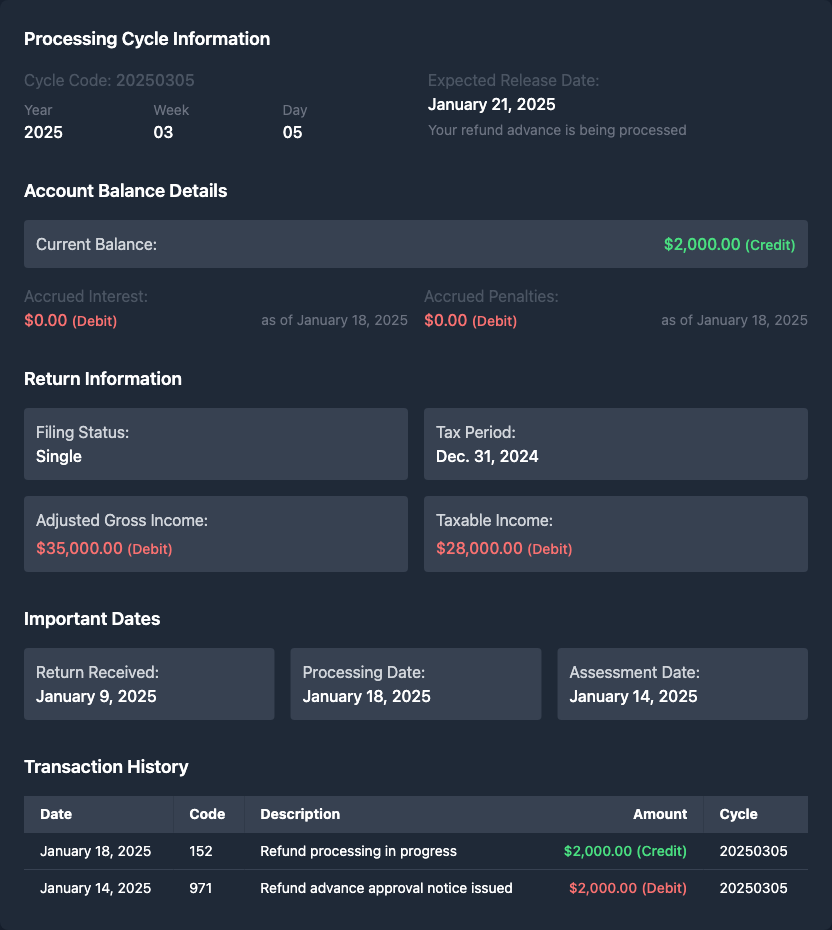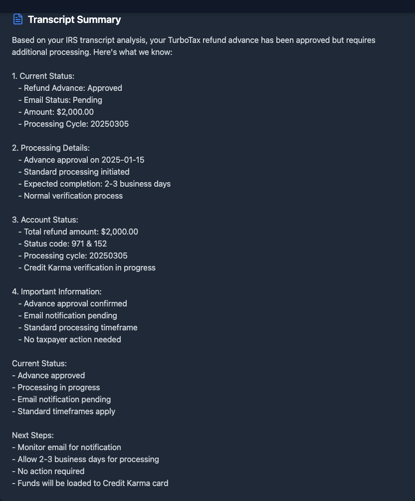 •Just used taxr.ai and here's what I got back: My refund was approved but stuck in processing due to income verification. Should clear in 7-10 days.