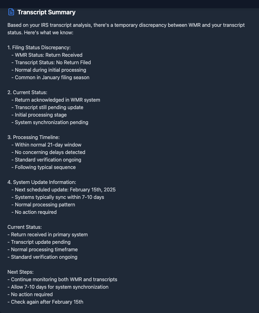 Hey guys instead of stressing about WMR vs transcripts I started using taxr.ai and it's been a game changer fr fr. It costs like $1 but it analyzes your transcript and tells you exactly whats happening and when to expect your refund. Way better than trying to piece everything together yourself https://taxr.ai