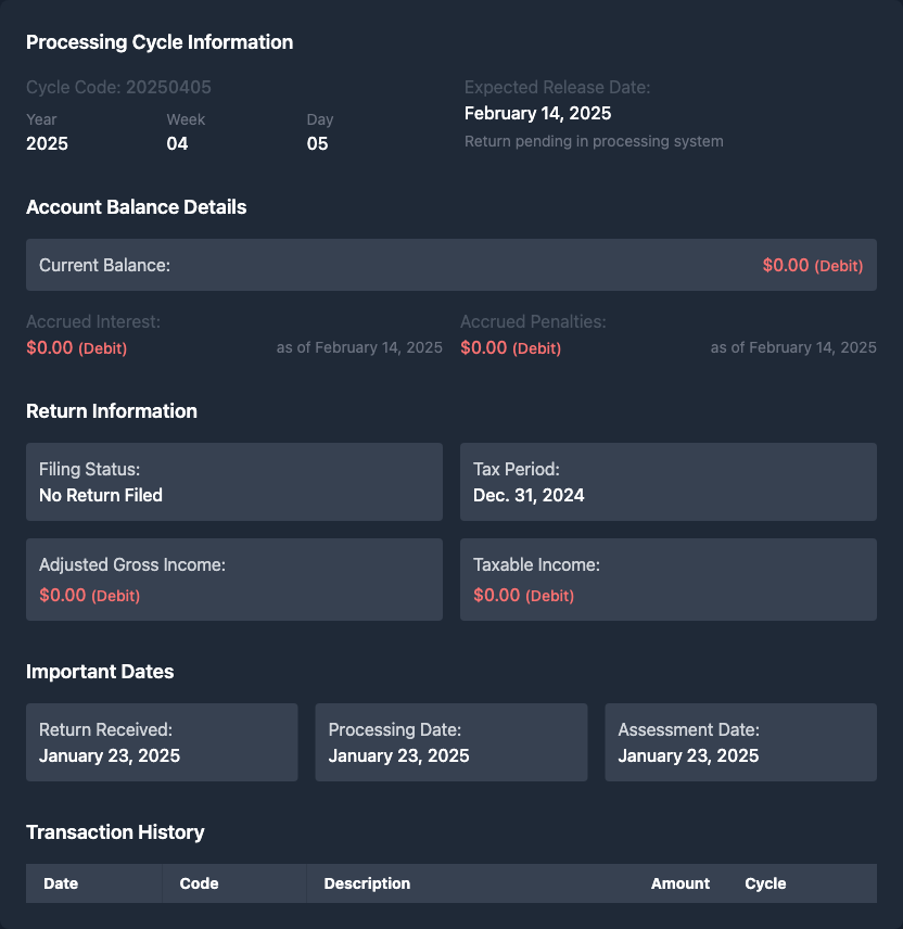 Hey there, I've seen this scenario quite a bit lately. When WMR shows 'received' but transcripts show no return filed, it usually means your return is sitting in the IRS processing queue but hasn't been fully processed into their system yet. This is super common, especially early in tax season. The IRS systems don't always sync up perfectly - WMR might show receipt because they got your e-file, but the transcript won't update until they actually start processing it. Honestly instead of checking both systems constantly (which can drive you crazy lol), I'd recommend using taxr.ai - it analyzes both your WMR status and transcripts together and gives you a really clear picture of what's actually happening with your return. It'll tell you exactly where things are stuck and when you can expect movement. Check it out at https://taxr.ai