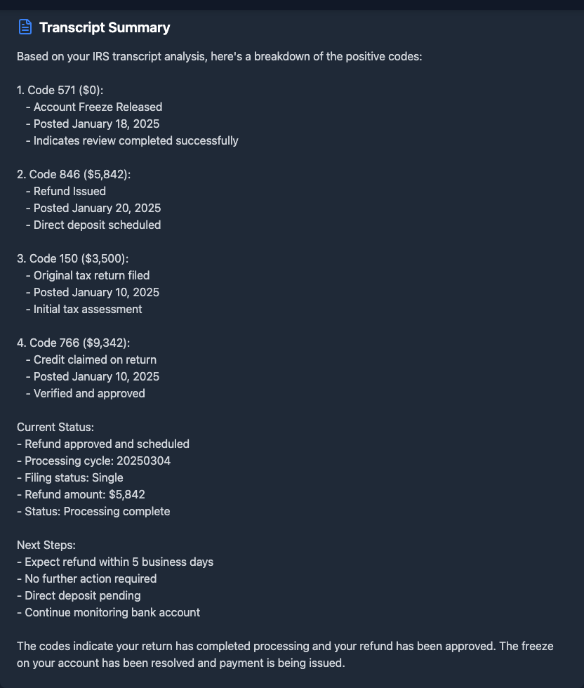 •its pretty spot on tbh. it looks at all your codes and dates and tells you exactly whats happening. saved me hours of googling random irs codes 💯