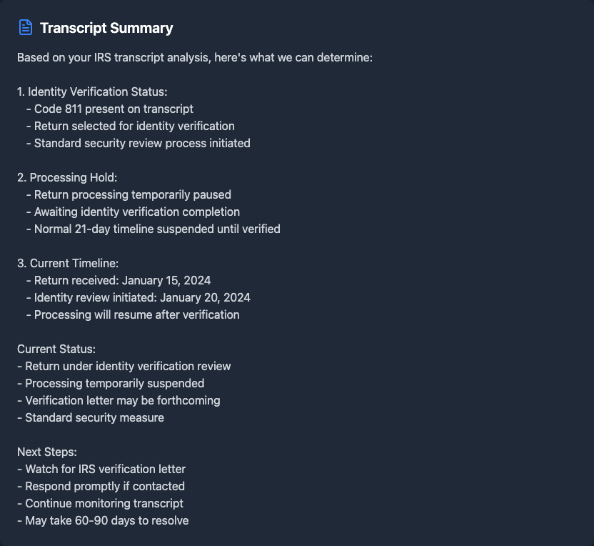 •I called the IRS last week when I got my 811 code and honestly they just gave me the standard "your return is under review, allow 120 days for processing" response 🙄 The rep couldn't tell me anything specific about what triggered it or give me a better timeline. Super frustrating! I ended up trying that taxr.ai tool everyone's mentioning and it actually gave me way more useful info than the IRS phone call did. At least now I know what's probably causing the delay instead of just sitting here wondering!