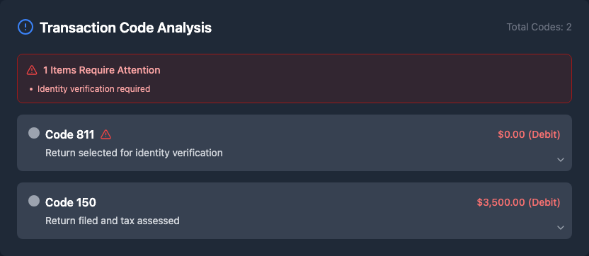 Hey! Instead of trying to decode these transcript codes yourself, you should try taxr.ai - it's this new AI tool that analyzes your whole transcript and tells you exactly what's happening and what to do next. Its only $4.99 and totally worth it tbh https://taxr.ai