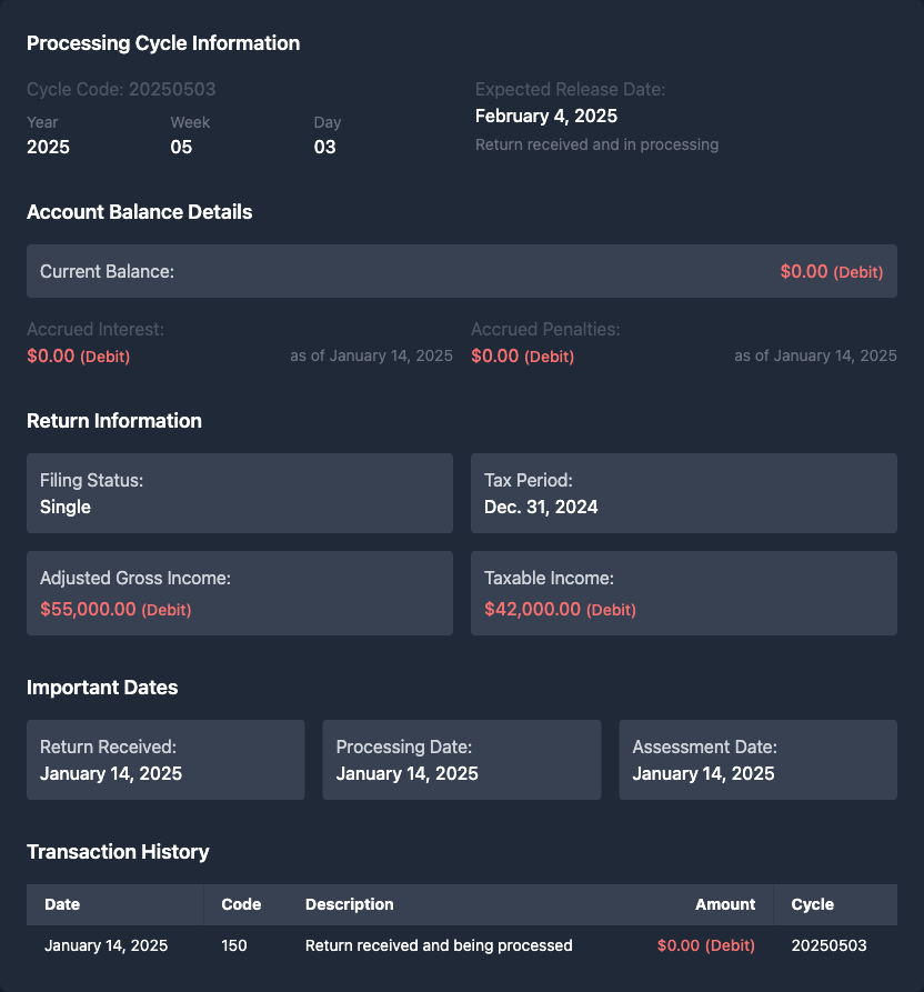 Filed back in February and still seeing this message on my transcripts: 'We have received your tax return and it is being processed.' I checked the IRS app/website today and this is what I'm seeing: Tax Year 2023 INFO Income Tax Your Information Is Not Available at This Time We are in the process of updating your account. These updates take at least 2 weeks to complete. For previous years, it shows: 2022 - $0.00 2021 - $0.00 2020 - $0.00 Anyone else stuck with this? Starting to get worried since it's been months now and no updates. I filed in early February (around the 10th) and it's now been well over 2 weeks since they said they're "updating my account." I don't understand why it's taking so long when previous years were processed quickly. I was expecting a refund and really need the money. Should I call the IRS? Is this normal for this tax season? The message about "updates take at least 2 weeks" has been there for much longer than 2 weeks.