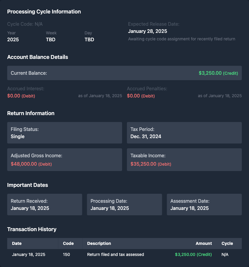 When Will 2024 IRS Transcript Be Available? Filed Yesterday But SBTPG Shows $7,933 Refund Activity Already